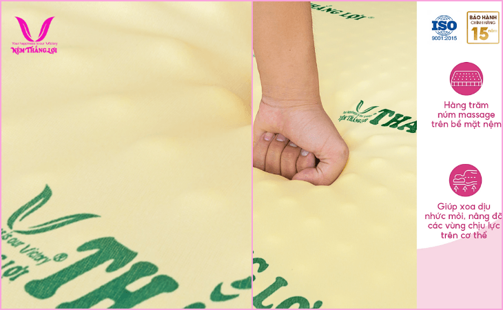Bảo hành dài hạn: Thắng Lợi cam kết bảo hành nệm cao su non từ 15 năm, tùy theo loại sản phẩm, đảm bảo sự yên tâm cho khách hàng trong suốt thời gian sử dụng.