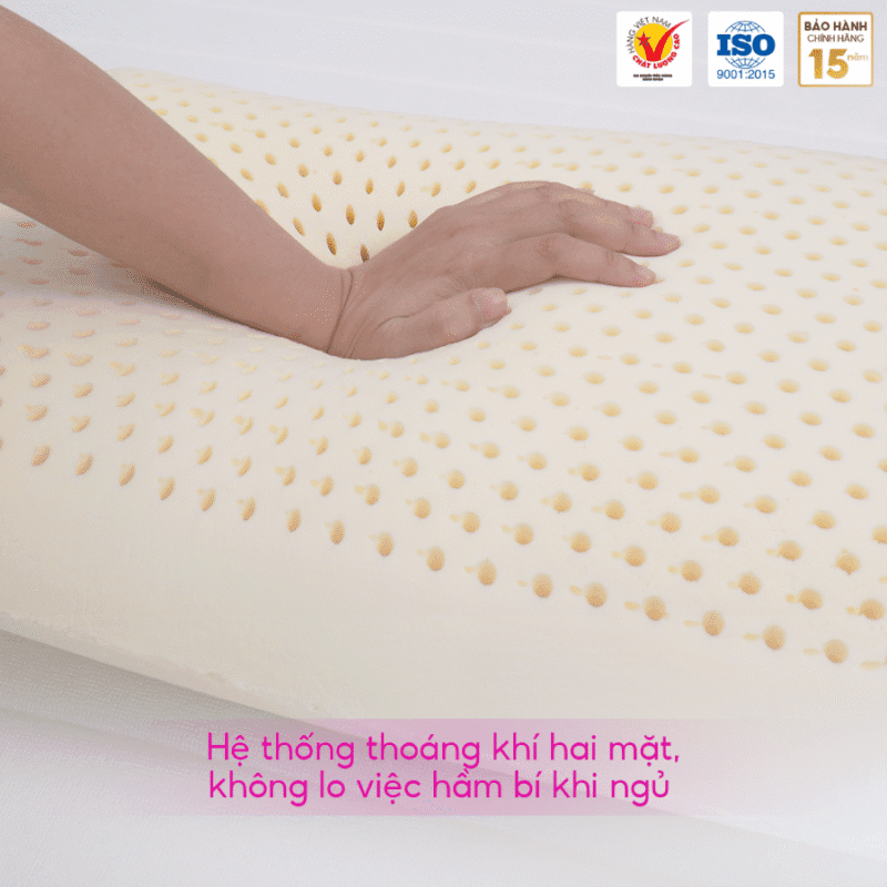 Hệ thống lỗ thoáng khí trên bề mặt gối giúp tối ưu hóa khả năng lưu thông không khí, hạn chế tình trạng nóng bức khi sử dụng. Nhờ đó, gối luôn mang đến cảm giác mát mẻ, thoải mái dù sử dụng trong thời gian dài.
